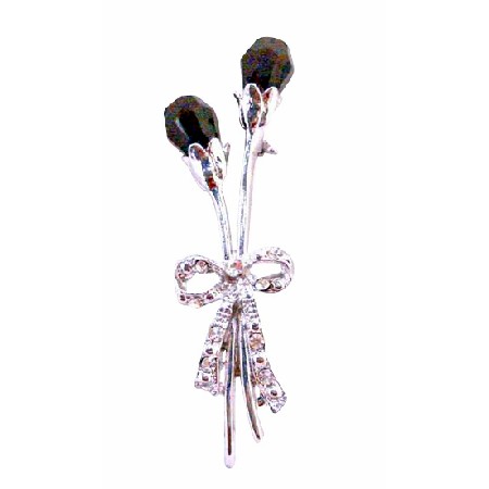 Give every ensemble a feminine touch with this beautiful brooch Dark Amethyst Crystals Two Teardrop Tulip Brooch Long Stem with Bow. Add a dash of drama with a bold eye-catching brooch. Made with artistically designed with Simulated Diamond good quality of Cubic Zircon Embedded all over Bow are cubic zircon friligee pin [brooch] so popular around 1960s. -- beautiful simple classic.