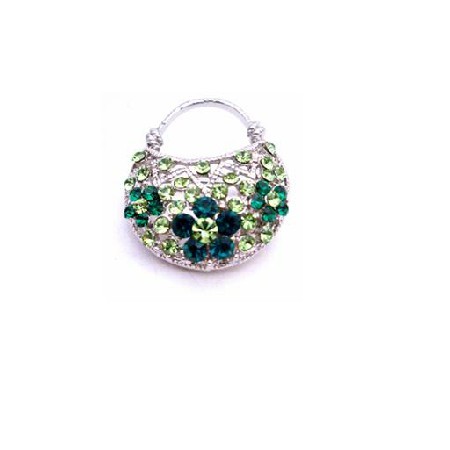 Glorious/Fabulous Silver Casting Purse Design Pin in Sparkling Peridot Crystals Fully Embedded Purse with brilliant Shinning Cubic Zircon very Sparkly! An absolutely gorgeous vintage brooch. Give every ensemble a feminine touch with this beautiful brooch. Add a dash of drama with a bold eye-catching brooch. The brooch is beautiful crafted & authenticated attaches securely with pin clasp. Picture this lovely brooch on your favorite dress shirt scarf or jacket lapel. A beautiful accessory for any occasion. Secures with a standard pin clasp. A great gift idea or an addition to your jewel collection.
