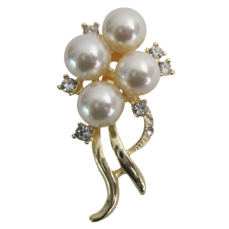 Artistically Designed Gold Pearls Flower Brooch for sashes wedding cake or all purpose decorated with cubic zircon stud pefect for all dresses brooch with beautiful craftmanship at affordable price your budget price very beautiful decorate & for all occasion. This contemporary brooch pin with excellent quality Pretty & feminine describes this vintage Brooch with brilliant & excellent crafted Very Elegant Dainty & Sleek! An absolutely gorgeous.
