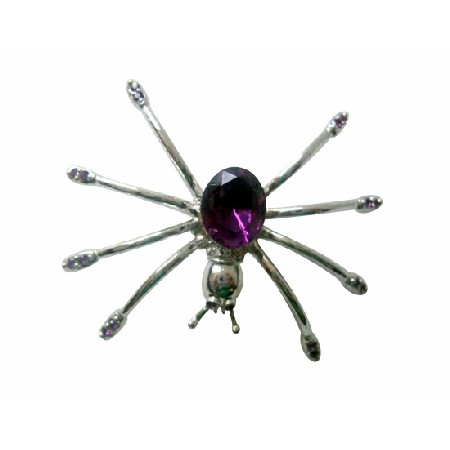 Austrian Sapphire Crystals Spider Brooch Pin