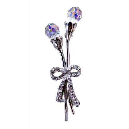 Give every ensemble a feminine touch with this beautiful brooch AB Crystals Teardrop Tulip Brooch Long Stem with Bow. Add a dash of drama with a bold eye-catching brooch. Made with artistically designed with Simulated Diamond good quality of Cubic Zircon Embedded all over Bow are cubic zircon friligee pin [brooch] so popular around 1960s. -- beautiful simple classic.