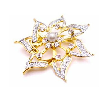 Traditional brooch Bridesmaid Dress brooch flower shaped in gold with Ivory pearl at center Flower petals fully decorated & encrusted with cubic zircon beautiful craftmanship at affordable price under $10 very beautiful decorate & for all occasion. This contemporary brooch pin with excellent quality Pretty & feminine describes this vintage Brooch with brilliant & excellent crafted Very Elegant Dainty & Sleek! An absolutely gorgeous