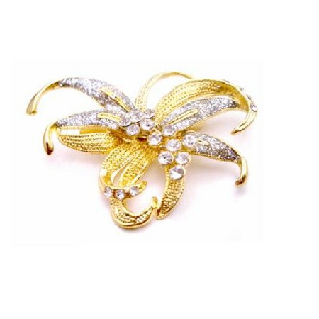 Artistically Designed Gold Bow brooch for sashes or all purpose decorated with cubic zircon stud & crystals pefect for wedding dresses brooch with beautiful craftmanship at affordable price under $10 very beautiful decorate & for all occasion. This contemporary brooch pin with excellent quality Pretty & feminine describes this vintage Brooch with brilliant & excellent crafted Very Elegant Dainty & Sleek! An absolutely gorgeous