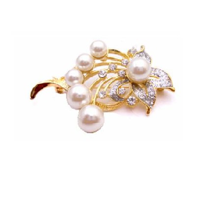Gift Gold Framed Pearls Bouquet brooch in gold classy framed with Ivory pearls cubic zircon stud glittered leaves tiny flowers beautiful craftmanship at affordable price under $10 very beautiful decorate & for all occasion. This contemporary brooch pin with excellent quality Pretty & feminine describes this vintage Brooch with brilliant & excellent crafted Very Elegant Dainty & Sleek! An absolutely gorgeous
