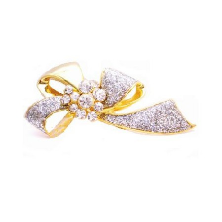 Artistically Designed Gold Bow brooch for sashes or all purpose decorated with cubic zircon stud & crystals pefect for wedding dresses brooch with beautiful craftmanship at affordable price under $10 very beautiful decorate & for all occasion. This contemporary brooch pin with excellent quality Pretty & feminine describes this vintage Brooch with brilliant & excellent crafted Very Elegant Dainty & Sleek! An absolutely gorgeous