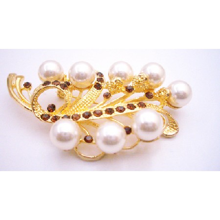 Give every ensemble a feminine touch with this beautiful Gorgeous Brooch Ivory Pearls Decorated with Smoked Topaz with Artistic Work all over the brooch VERY Sleek Dainty & Sophisticate. Add a dash of drama with a bold eye-catching brooch. Good & high quality Brooch this is lovely brooch on your favorite dress shirt scarf or jacket lapel. A beautiful accessory for any occasion. Secures with a standard pin clasp. A great gift idea or an addition to your jewel collection. Pretty & feminine describes this vintage Brooch & excellent crafted Very Elegant Dainty & Sleek! An absolutely gorgeous vintage brooch.