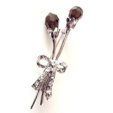 Give every ensemble a feminine touch with this beautiful brooch Smoked Topaz Crystals Teardrop Tulip Brooch Long Stem with Bow. Add a dash of drama with a bold eye-catching brooch. Made with artistically designed with Simulated Diamond good quality of Cubic Zircon Embedded all over Bow are cubic zircon friligee pin [brooch] so popular around 1960s. -- beautiful simple classic.