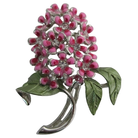 Accessorize your favorite outfit or spice up apparel that just needs some extra kick Glorious/Fabulous Pink flowers adjoined to stem with silver casting & green leaf very unique look real leafs! An absolutely gorgeous vintage brooch. Give every ensemble a feminine touch with this beautiful brooch. Add a dash of drama with a bold eye-catching brooch. The brooch is beautiful crafted & authenticated attaches securely with pin clasp. Picture this lovely brooch on your favorite dress shirt scarf or jacket lapel.