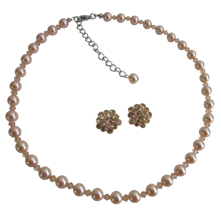 Handmade Exquisite Set! All A Grade & Material are used to make this beautiful Pearls String Set. Swarovski Peach Pearls wsize 7mm with Peach Crystals size 4mm The design is Handmade dozens of lustrous sparkling Pearls & Crystals Necklace length measures 16 inches & have Lobster clasp with extension upto 2 inches.Stunning Flower Peach Crystals Stud Earrings. We can custome the Earrings as all handmadeIt look very elegant lots of hard work & lots of patience have been used to make. it look beautifull for any women to wear & look sophisticated