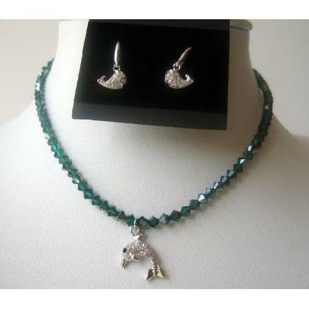 Handmade Exquisite Set! All A Grade & Material are used to make this Beautiful Crystals Necklace Sets Delve into a World of Glamour. Swarovski Satin Emerald 4mm Bicone Crystals are accented in beautiful 16 inches Necklace with cute & dainty Dolphin Pendand & Earrings. The Necklace has lobster clasp for adjustment & extended upto 2 inches. Our Crystals designer channel Set Swarovski Crystals Necklace are versatile enough to be from the Fashion Jewelry Collection & can worn with any type of outfit.Perfect piece in Emerald Elegant Necklace Set.We can custom the length of Necklace with or without Pendant & can make matching braceletit look beautifull for any women to wear & look sophisticated