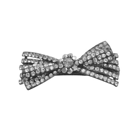 The metal hair clip consists Hermitite Bow hair barrette fully decorated generously with black diamond & clear rhinestones throughout the hair clip fully encrusted !!.Add pizzazz to your hairstyle with the latest craze in hair jewelry! These sparkling Crystals are dazzling catching every color & light ray & adding just the right touch to your evening or formal occasion. The uses for this item is endless!.