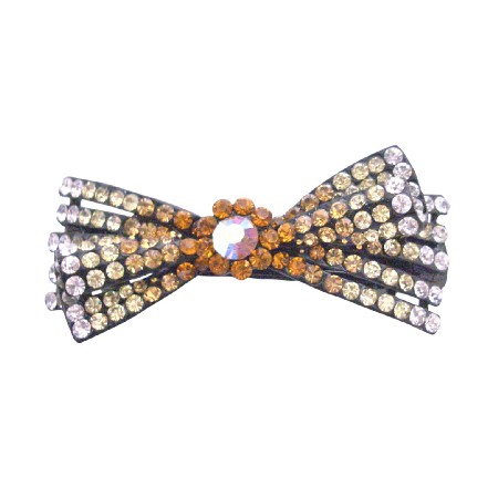 The metal hair clip consists Bow hair barrette fully decorated generously with Topaz Jonquil & Clear Rhinestones throughout the hair clip fully encrusted !!.Add pizzazz to your hairstyle with the latest craze in hair jewelry! These sparkling Crystals are dazzling catching every color & light ray & adding just the right touch to your evening or formal occasion. The uses for this item is endless!.