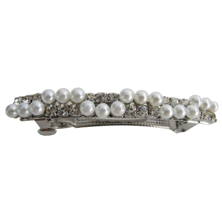 This Gold metal hair clip consists Pearls & Simulated Diamond hair barrette fully decorated generously throughout the hair clip fully encrusted !!.Add pizzazz to your hairstyle with the latest craze in hair jewelry! These sparkling Crystals are dazzling catching every color & light ray & adding just the right touch to your evening or formal occasion. The uses for this item is endless!.