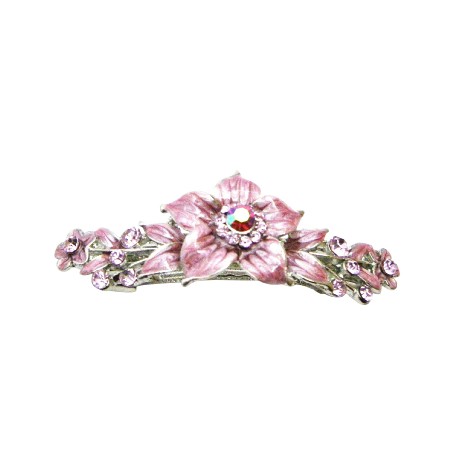 Beautiful Pink Baratte with Rose Crystals embedded arranged on light & dark Pink flowers.Add pizzazz to your hairstyle with the latest craze in hair jewelry! These sparkling Crystals are dazzling catching every color & light ray & adding just the right touch to your evening or formal occasion. The uses for this item is endless!.It measures 2 1/2 inches long & 1 inch wide