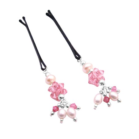 Handmade Bridal Hair Pin Freshwater Pearls & Rose Crystals Hair Pin