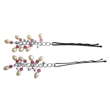 Powder Almond Pearls & Swarovski Crystals Bobby Pin Bridal Hair Pin