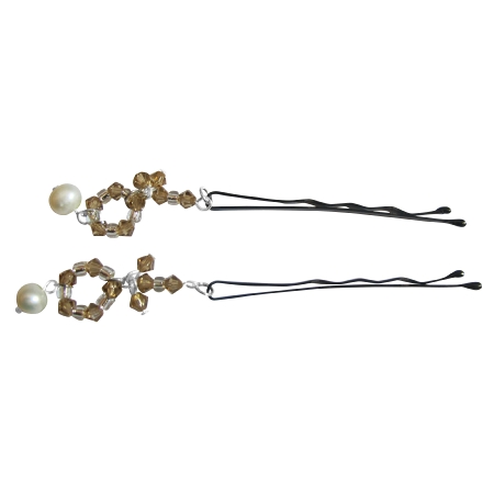Powder Almond Pearls & Swarovski Crystals Bobby Pin Bridal Hair Pin