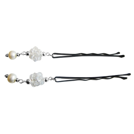 Powder Almond Pearls & Swarovski Crystals Bobby Pin Bridal Hair Pin