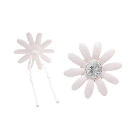 Hair pins add that touch of sparkle & elegance to improve any hairstyle. Our unique collection high quality durable features hair pin white enamel flower with matching clear crystal at center. Exquisite wedding accessories compliment your personal style & at the same time serve an important purpose.