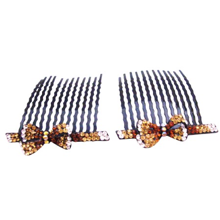 Material Used : Quality black metal comb with bow arranged with crystals fully embedded - Smoked Topaz Lite Topaz Clear Crystals