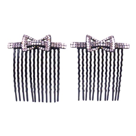 Nice gift for you or your loved one. This bow hair comb is extremely pretty & can be used in many hair styles. Beautiful hair Comb has bow arranged in Black Diamond & Clear crystal fully encrusted very sleek design & affordable.