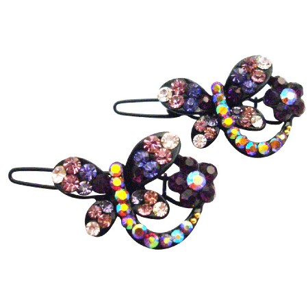 Girls flower girl hair clip shaped in burtterfly with clear Amethys Lite Amethyst Crystals with cute flower. These sparkling all Amethyst Lite Amethyst Crystals are dazzling catching every color & light ray & adding just the right touch to your evening or formal occasion. The uses for this item is endless!.