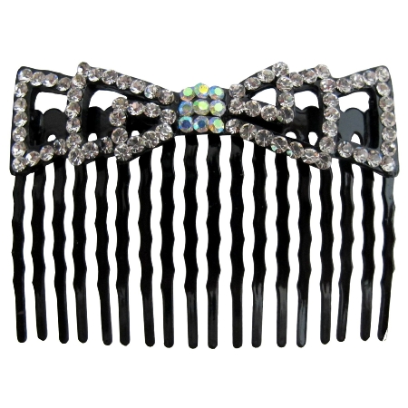 Material Used : Black metal comb with Bow shaped hair barrette in Clear rhinestone