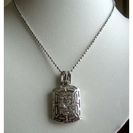 Fabulous Estate Designer Inspired Cubic Zircon Pendant that look like simulated Diamond in Silver Rhodium Chain which is Elegant- Chic-Classic - Traditional. Chain LengthPendant lengthLobster Clasp