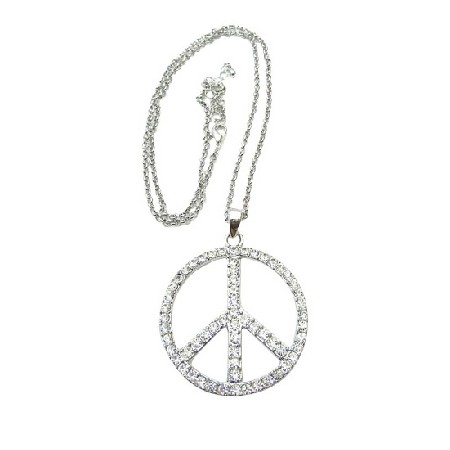 Exclusive item! Iced Flashy Peace Pendant all embeded in full cubic zircon. The chain long 24 inches not real Platinum or silver but look like as high quality of rhodium plated. Cubic Zirconia that glisten like real Diamond! Bling Bling! The piece measure 1.5 inches diameter