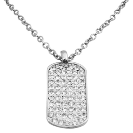 Exclusive item! Iced Flashy Dog Tag Pendant all embeded in full cubic zircon. The chain high quality of rhodium plated. Cubic Zirconia that glisten like real Diamond! Bling Bling!.