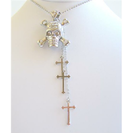 Material Used : Chained desigened Silver Plated Good quality Necklace with Sparkling Bling Bling Skull Head Pendant & drop down Cross Pendant