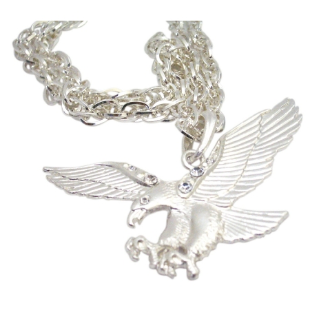 Exclusive item! Striking Pendant Eagle pendant Silver with Cubic Zircon encrusted in Eagle Flashy Pendant absolutely good quality is one of the most popular & everlasting theme's in jewelry particularly amongst celebrities Traditional yet modern it remains one of the hottest items on the market. The Pendant look terrific. The chain long 28 inches. Good as a gift to others or to yourself the open heart captures the moment. The chain silver plated high quality. Cubic Zirconia that glisten like real Diamond! Bling Bling!.