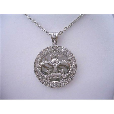 Exclusive item! Striking Pendant Round Spinning Crown Pendant Silver with Cubic Zircon encrusted in a Circle Iced Flashy Pendant absolutely good quality. Spinning Rotating Pendant with Necklace is one of the most popular & everlasting theme's in jewelry particularly amongst celebrities Traditional yet modern it remains one of the hottest items on the market. The King Crown Pendant look terrific & Real Crown. The chain long 28 inches. Good as a gift to others or to yourself the open heart captures the moment. The chain silver plated high quality. Cubic Zirconia that glisten like real Diamond! Bling Bling!.