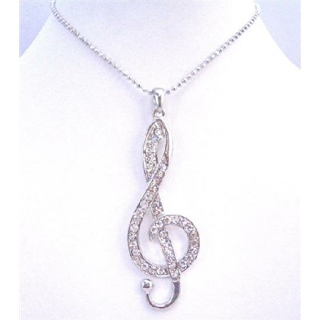 This is Smashing/Striking ! This new & Magnificent Musical Pendant Engraved on Silver & decorated with cubic zircon stones studily prong Set it is really shimmering & Brilliant Pendant this Attracting & Stunning for You. It Come with new simulated platinum Necklace which is Elegant- Chic - Classic - Traditional. The Whole Pendant is in uniform color held in prog Set & quality craftsmanship to ensure quality & durability Chain Silver Rhodium Plated Length 26 inches Long Pendant length 3 1/2 inches long & 1 1/2 inches wide Lobster Clasp