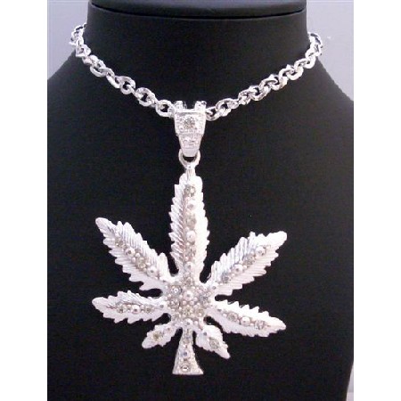 This is Smashing/Striking ! This new & Magnificent Flashy Weed Pendant Engraved on Silver & decorated with cubic zircon stones studily prong Set it is really shimmering & Brilliant Pendant this Attracting & Stunning for You. It Come with new simulated platinum Necklace which is Elegant- Chic - Classic - Traditional. The Whole Pendant is in uniform color held in prog Set & quality craftsmanship to ensure quality & durability Chain Silver Rhodium Plated Length 28 inches Long Pendant length 4 1/4 inches Long 3 inches widerLobster Clasp