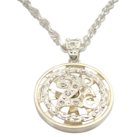 This is Smashing/Striking ! This new & Magnificent Spinning 2 Pac Rap Singer Pendant Fully Embedded with Cubic zircon Engraved on Silver & decorated with cubic zircon stones studily prong Set it is really shimmering & Brilliant Pendant this Attracting & Stunning for You. It Come with new simulated platinum Necklace which is Elegant- Chic - Classic - Traditional. The Whole Pendant is in uniform color held in prog Set & quality craftsmanship to ensure quality & durability Chain Silver Rhodium Plated Length 28 inches Long Pendant length 3 1/4 inches diameterLobster Clasp
