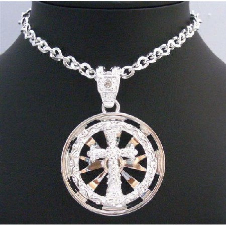 This is Smashing/Striking ! This new & Magnificent Spinning Long Cross Pendant Engraved on Silver & decorated with cubic zircon stones studily prong Set it is really shimmering & Brilliant Pendant this Attracting & Stunning for You. It Come with new simulated platinum Necklace which is Elegant- Chic - Classic - Traditional. The Whole Pendant is in uniform color held in prog Set & quality craftsmanship to ensure quality & durability Chain Silver Rhodium Plated Length 28 inches Long Pendant length 4 inches long & 2 inches wideLobster Clasp