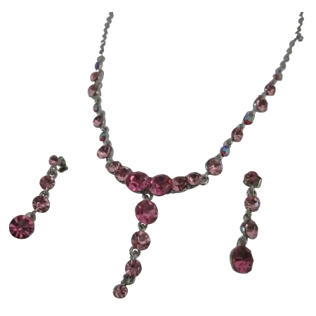 A declaration of grace a delicate sensuality! This is elegant sleek jewelry is for revitalizing your soul. Its all about feeling energized confident & sexy. Sparkling Fuchsia Purple light & dark Crystals Dressed in all Small Stud Pattern Necklace & earrings Set looks absolutely gorgeous with all dresses evening or casual wear. This is Silver Plated Chain with this Set is made Fuchsia light Crystals & Dark Crystalsthe main beauty is the lot of craft work embossed & dress up with many accessories. this fashion jewellery is a must have for fashion savvy.