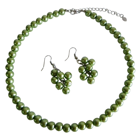 Affordable Bridal Bridesmaid Dark Gray Pearls Necklace Set w/ Bunches Of Pearls Earrings