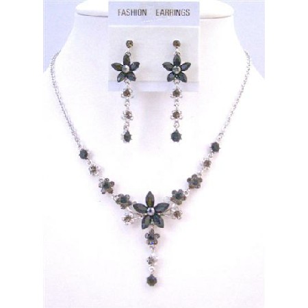 Peridot Crystals Necklace Sets Evening Formal Party Jewelry Flower Decorated W/ Green Crystals Christmas Gift