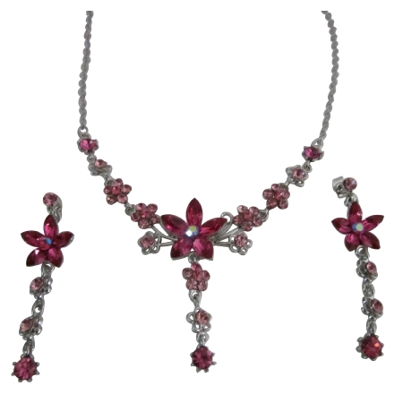 Amethyst Crystals Light & Dark Necklace Set Flower Design Jewelry Set