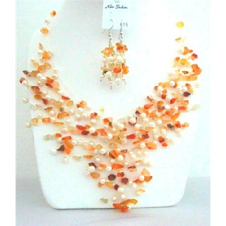 A beautiful Handcrafted carnelian Stone Nugget Chips with Freshwater Pearl accented in all over beautiful handmade you are sure to be chic in our reconstituted freshwater pearl Carnelian stone nugget chips reflecting latest fashion love of ornamentation with its posh look & easy-to-wear our Necklaces are not polished or reisin but 100. Percent genuine material are used. Whatever you are looking for Material used for Jewelry you can get it from Fashion Jewelry For Everyone Handmade Exquisite Necklace Set lovely & delicate necklace set.
