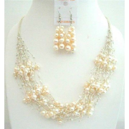 A beautiful Handcrafted Freshwater Pearl & Milky Glass beads accented in Multi Silver Strands beautiful handmade you are sure to be chic in our reconstituted freshwater pearl glass beads in silver strings reflecting latest fashion love of ornamentation with its posh look & easy-to-wear our Necklaces are not polished or reisin but 100. Percent genuine material are used. Whatever you are looking for Material used for Jewelry you can get it from Fashion Jewelry For Everyone Handmade Exquisite Necklace Set lovely & delicate necklace set.