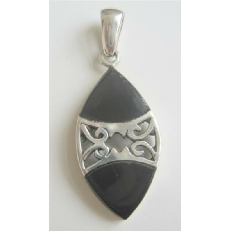Stylish sterling silver onyx inlaid with silver designed at the center very attractive pendant. This artisan crafted sterling silver with ethnic silver designed in the center of pendant.