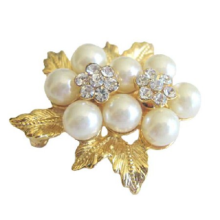 BEAUTIFUL BOW STYLE with PEARLS BROOCH / BROACH PIN GOLD TONE LARGE IMMITATION PEARL LOOK IN THE MIDDLE with bunch of IMMITATION white PEARE with cubic zirconia stones embedded in gold bow look awesome. This contemporary pin & this is of nice quality. Measuring 1 inche long & 2 inches wide but all the brilliance of a much larger pin! It is in excellent condition Attaches securely with a pin clasp