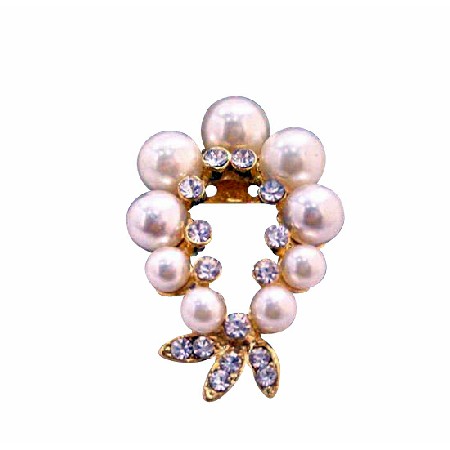 Give every ensemble a feminine touch with this beautiful Gold brooch fully decorated with Ivory Pearls Garland cubic zircon brooch VERY SPARKLING. Add a dash of drama with a bold eye-catching brooch. gold Casting decorated with Pearls cubic zircon superior high quality Brooch this is lovely brooch on your favorite dress shirt scarf or jacket lapel. A beautiful accessory for any occasion. Secures with a standard pin clasp. A great gift idea or an addition to your jewel collection. Pretty & feminine describes this vintage Brooch & excellent crafted Very Elegant Dainty & Sleek! An absolutely gorgeous vintage brooch.