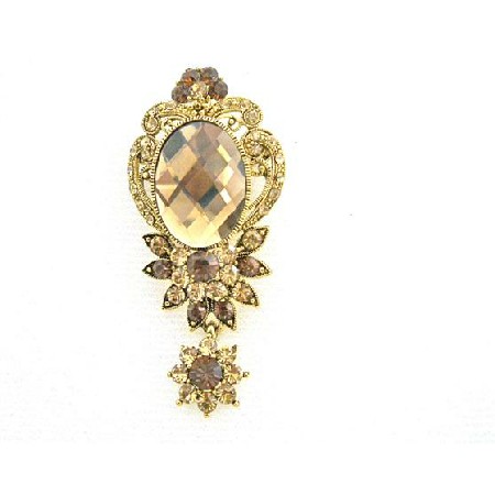 Give every ensemble a feminine touch with this beautiful Antique gold Dangling brooch with Sparkling all over Smoked Topaz & Light Colorada Most Stunning Faceted Round Smoked Topaz Crystal At Center that add a dash of drama with a bold eye-catching Golden Casting around Sunflower Pearls Brooch this is lovely brooch on your favorite dress shirt scarf or jacket lapel. A beautiful accessory for any occasion. Secures with a standard pin clasp. A great gift idea or an addition to your jewel collection. Pretty & feminine describes this vintage Brooch with Good quality crafted Very Elegant Dainty & Sleek! An absolutely gorgeous vintage brooch.