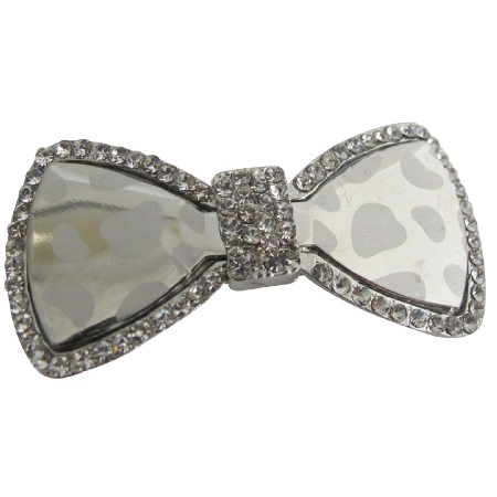 Material Used : Shinny glass silver bow hair barrette with clear rhinestone