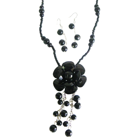 Pearl Jewelry has never been at the level that is now. There are more beautiful choices than ever before from all parts of the world. Just Gorgeous! In Black Beads Necklace with tiny bead Black Pearls accented in Necklace with Black Glass flower Pendant dangling Pearls. Available with matching Earrings dangling look just terrific! & perfect with all your outfit you wear or a gift for loved. Jewelry for BridesmaidBridal Flower Prom Wedding.