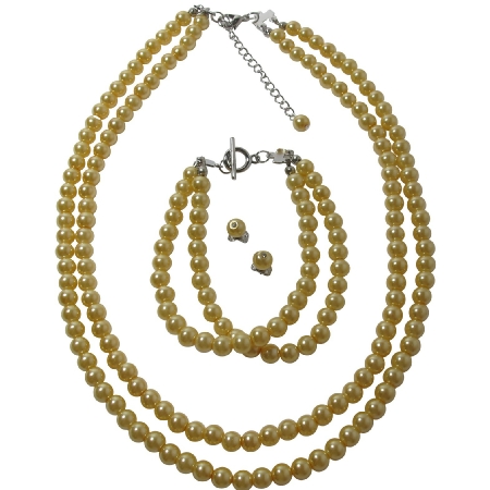Champagne Pearl Bridesmaid Prom Complete Jewelry Set